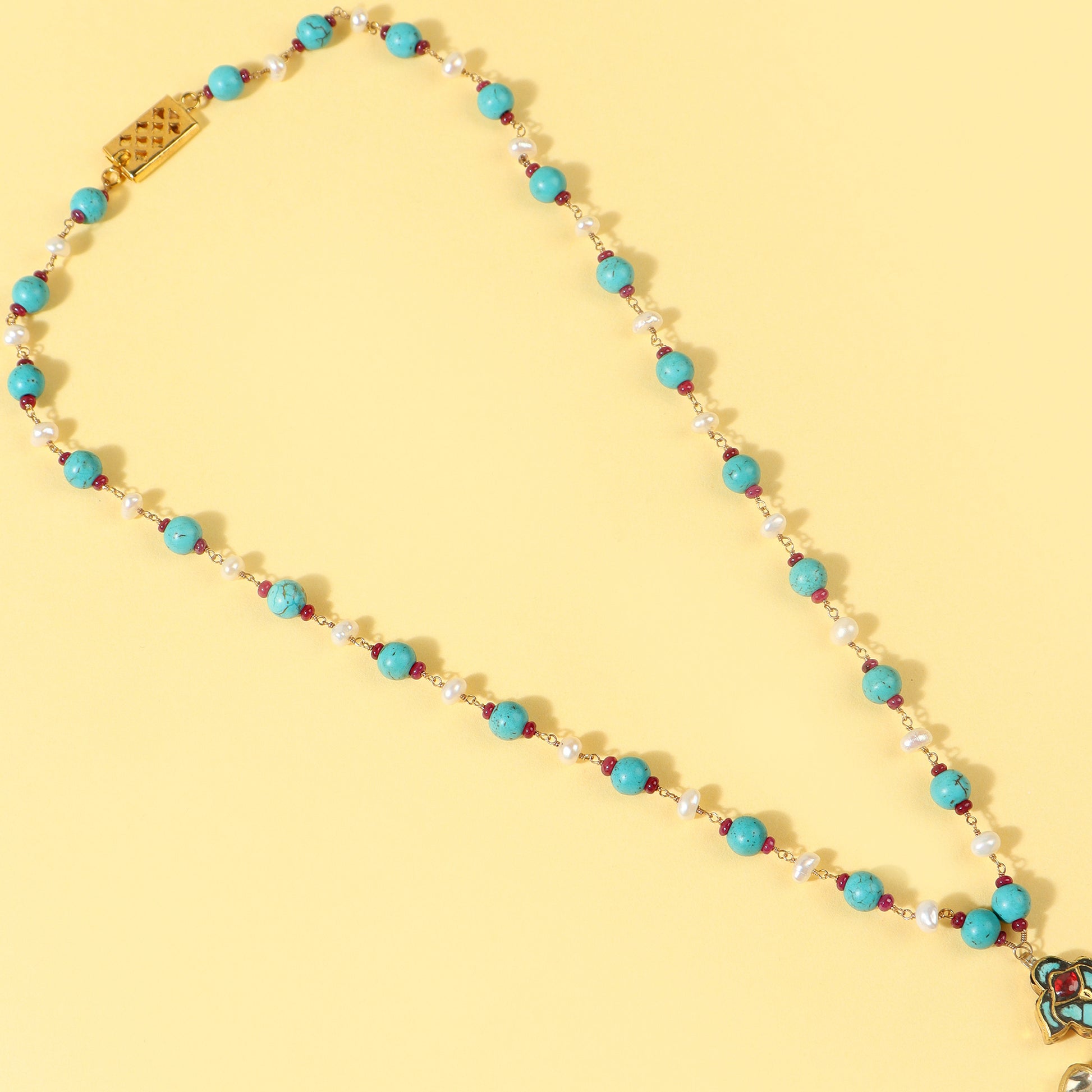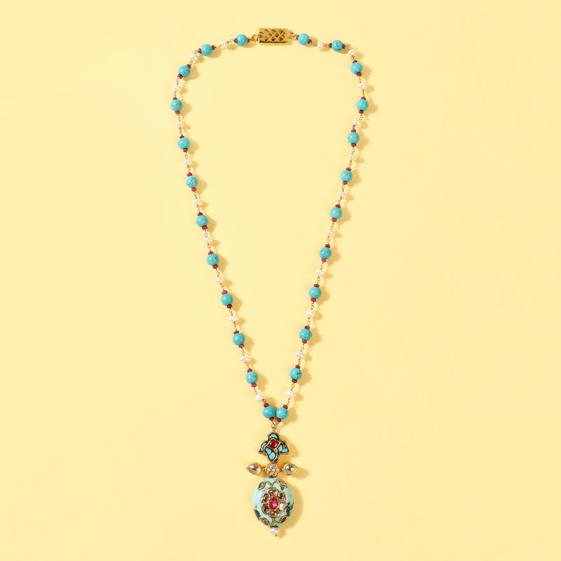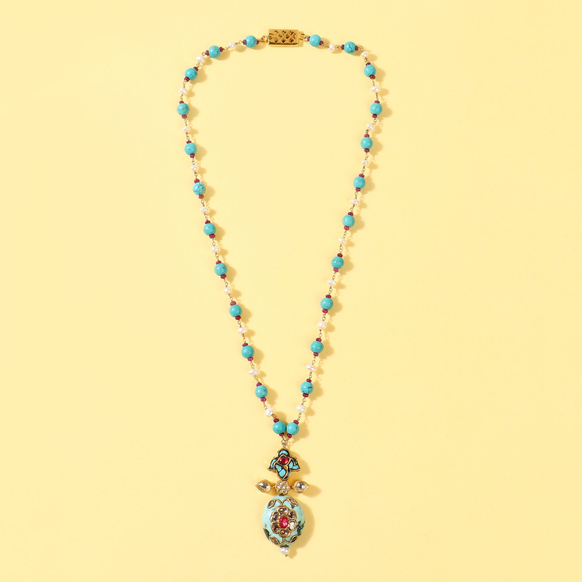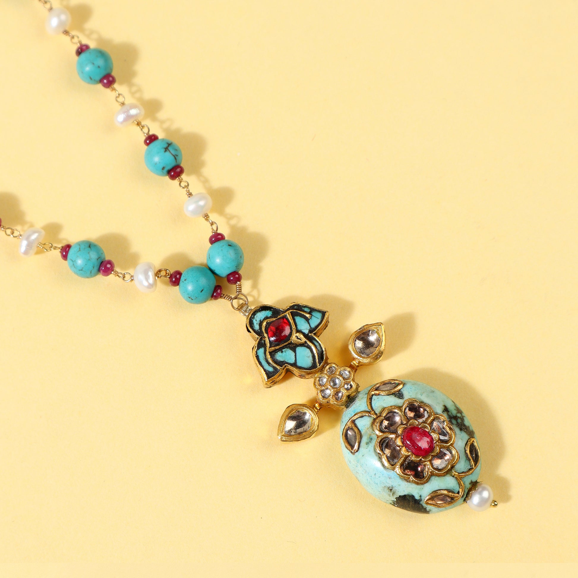 Gold Jadau Polki Tuquoise Pendant Necklace