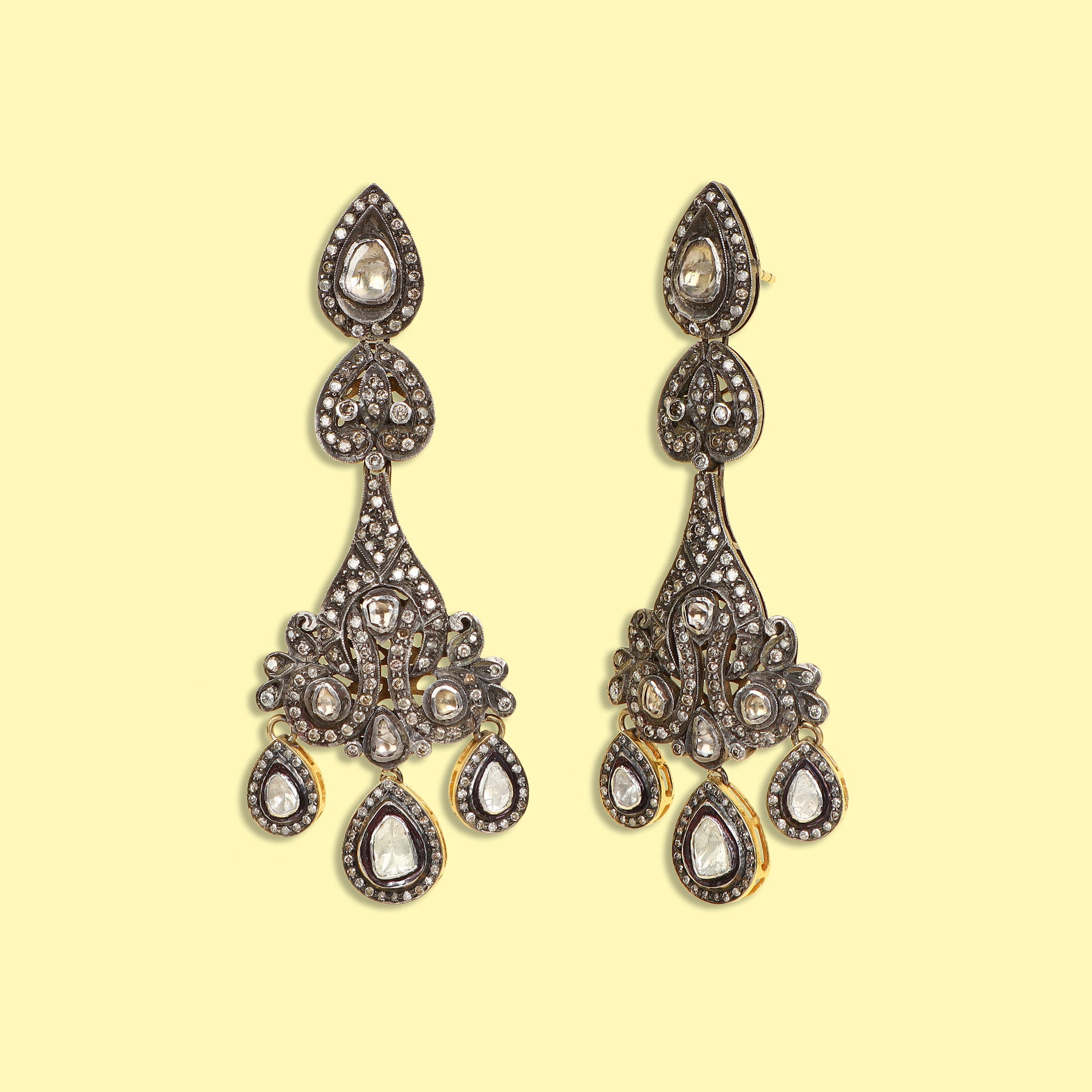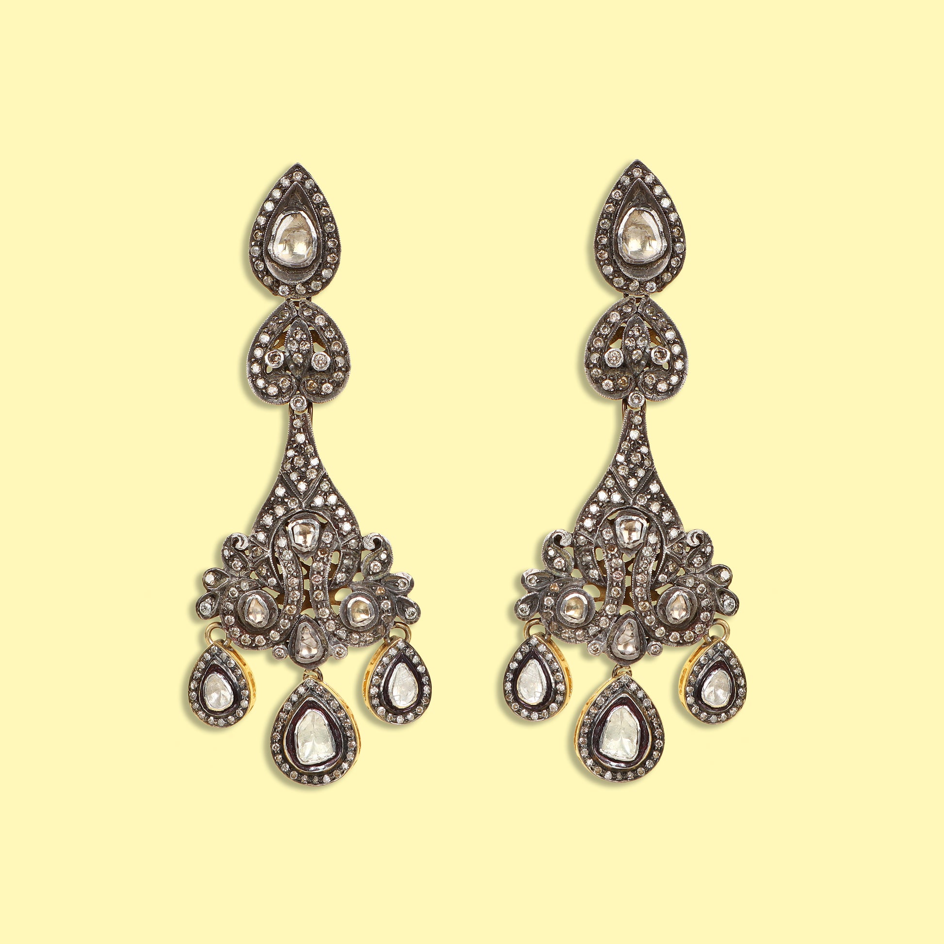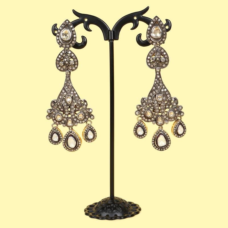 Gold Silver Victorian Style Polki & Diamond Earrings