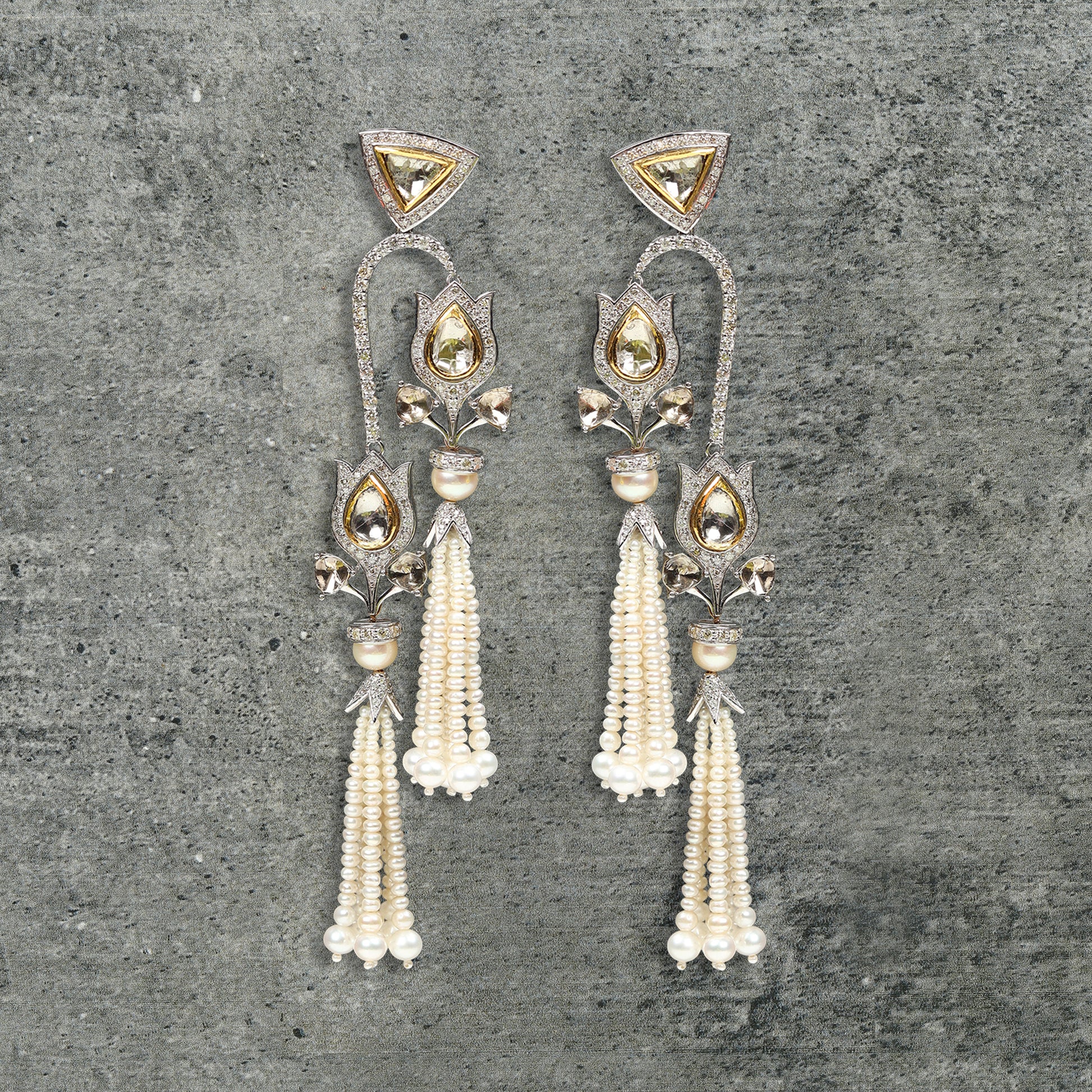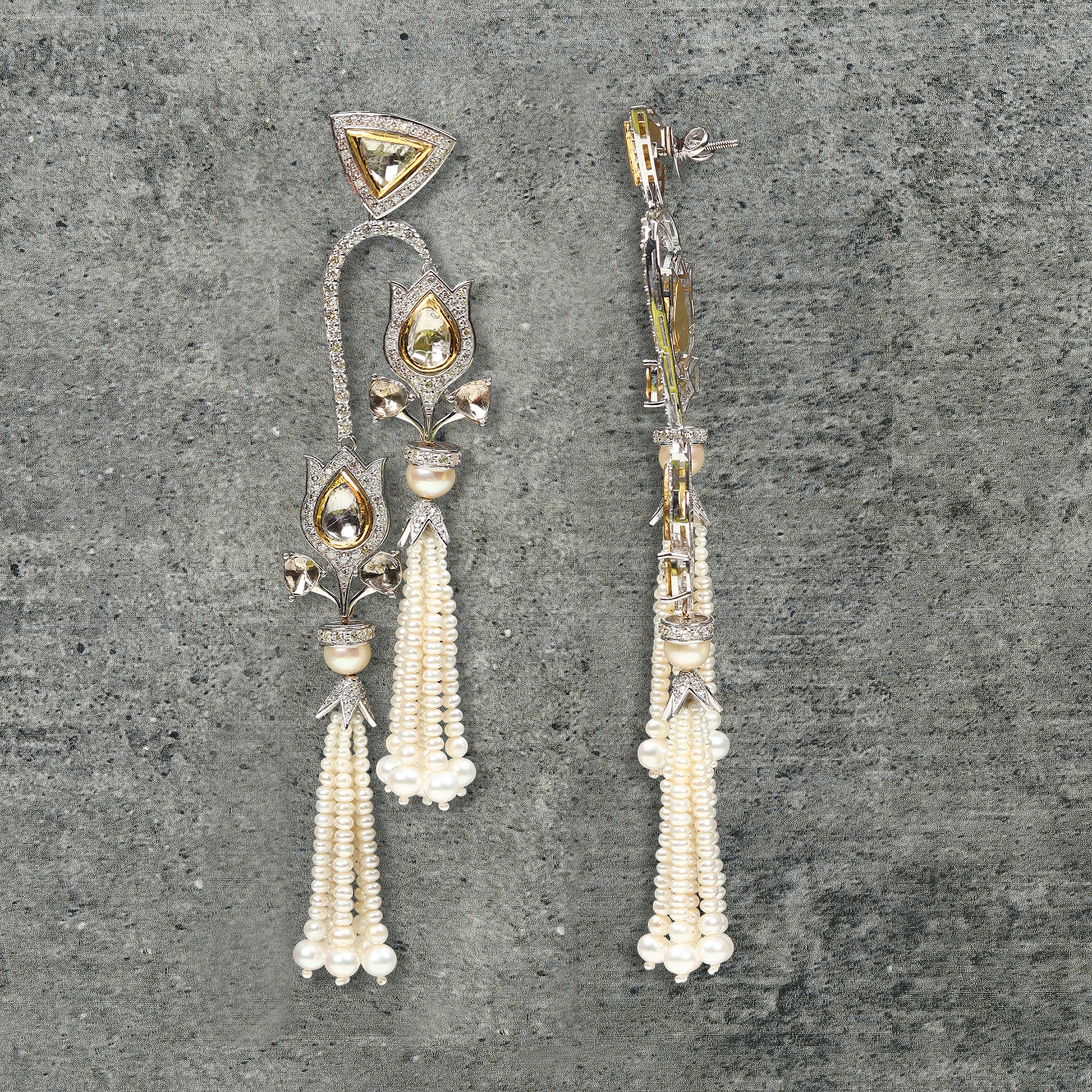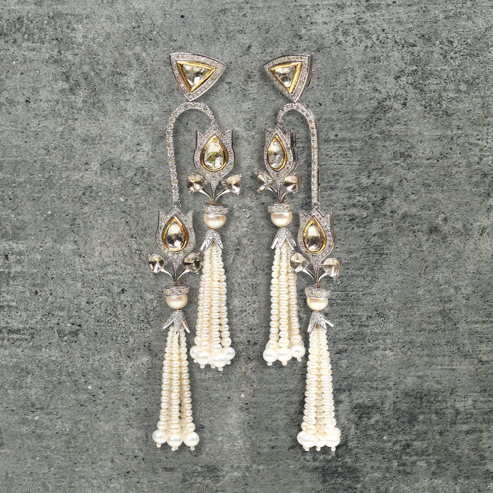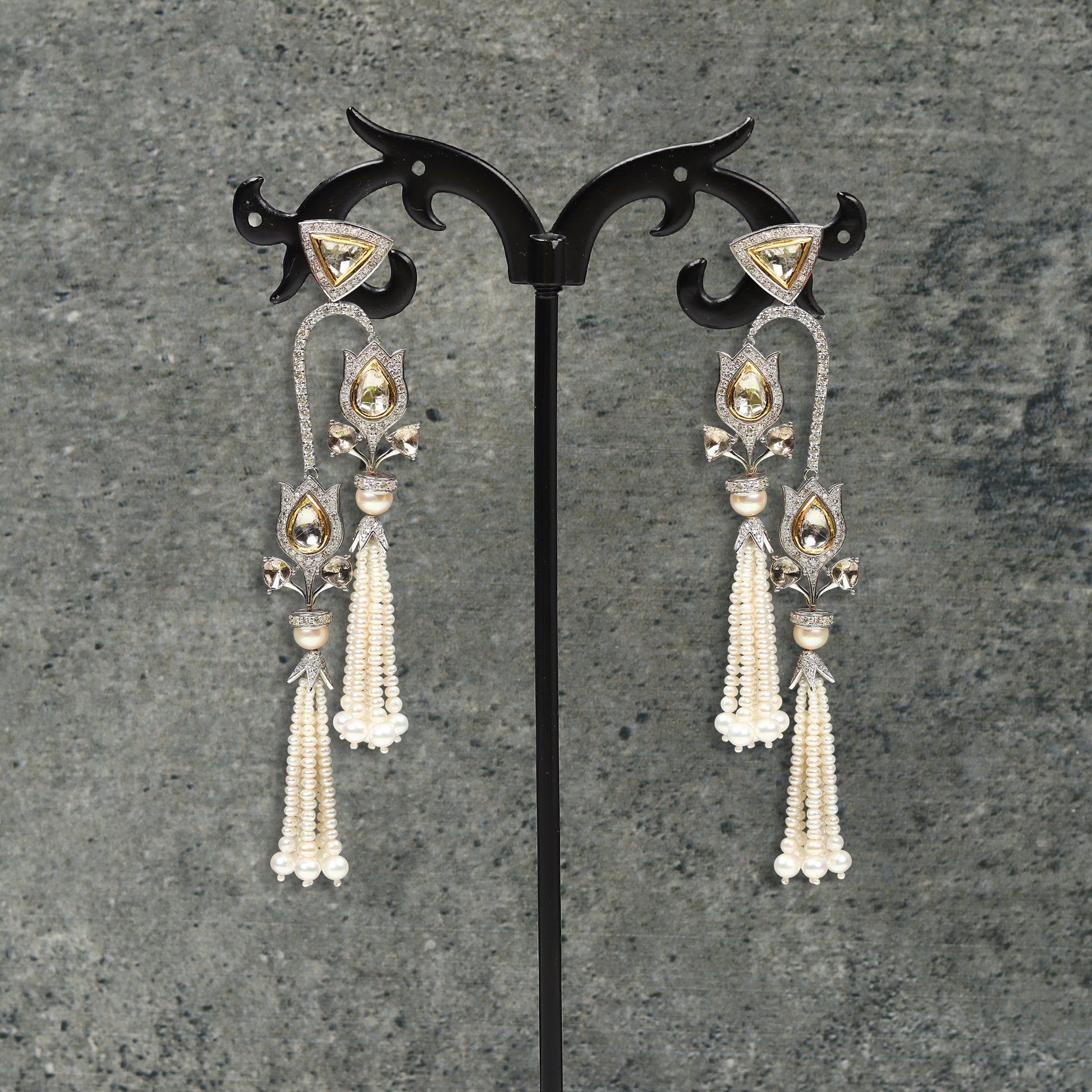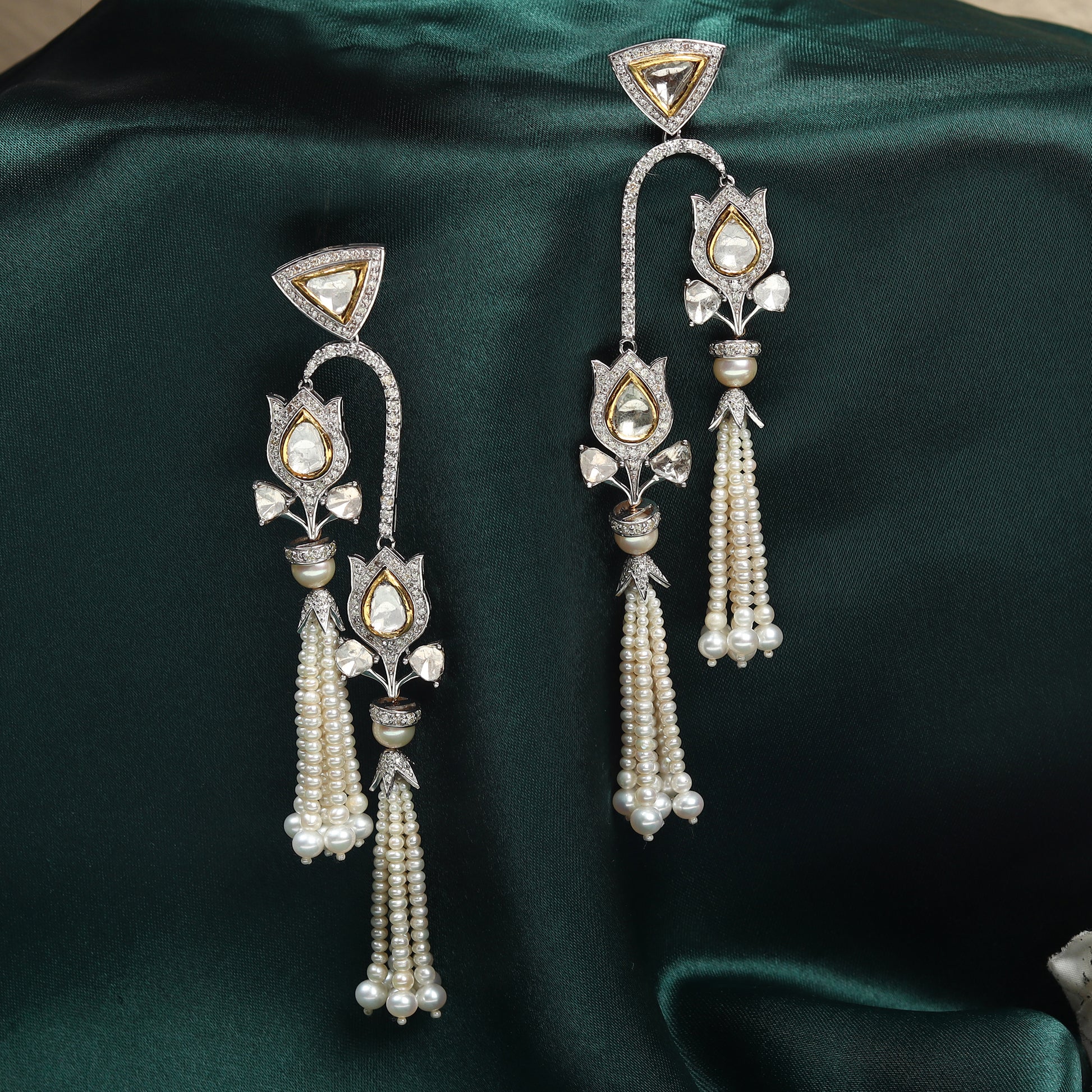 Gold 9 cts 22 gms, diamonds 5.5 cts, Polki 5.65 cts, Pearls 66.6 cts,