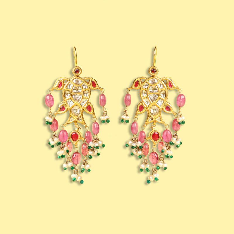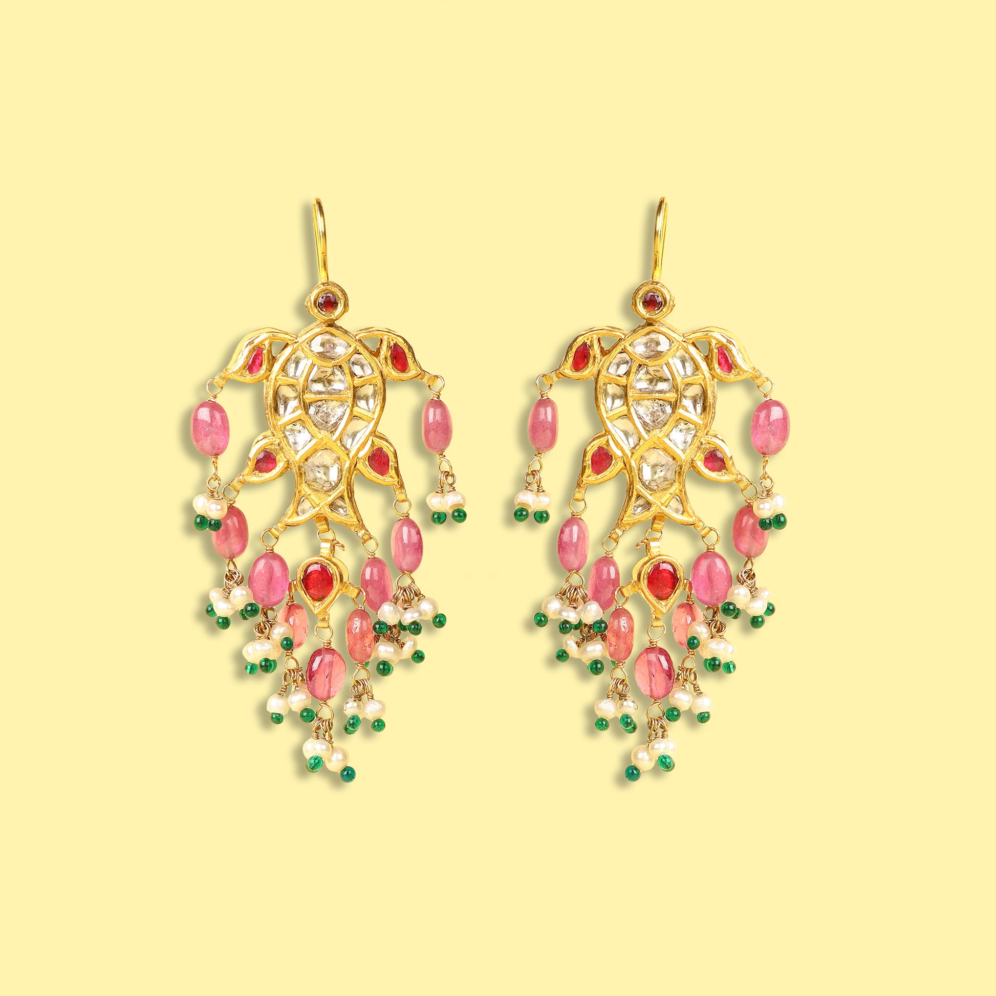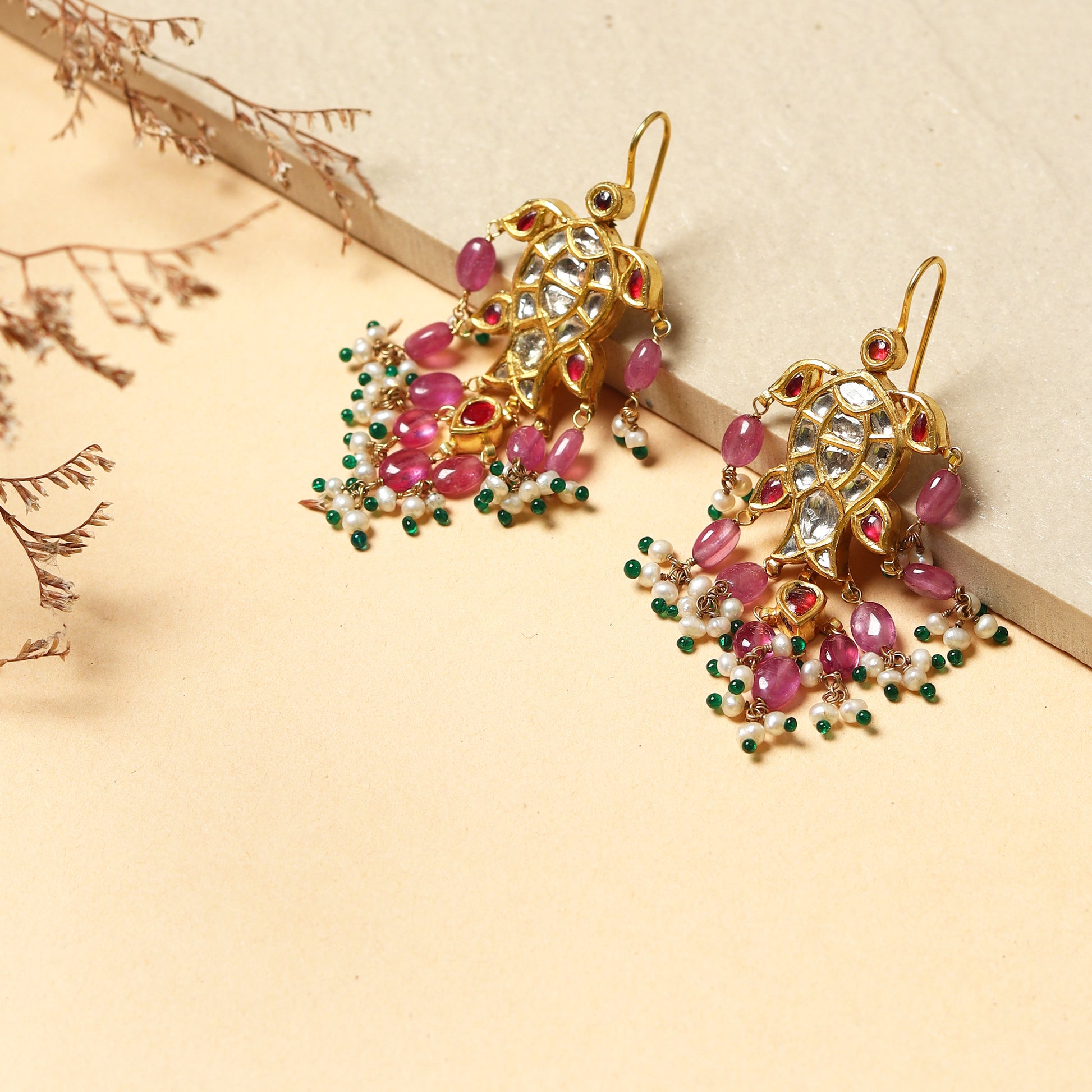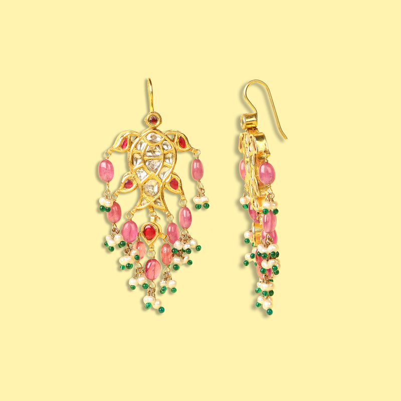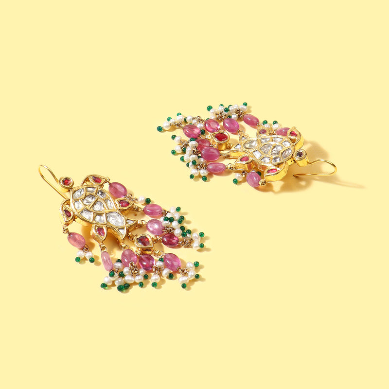 Gold 22 & 24 cts 6.0 gms, Polki 1.50 cts, Ruby 21.5 cts Pearls 10 cts