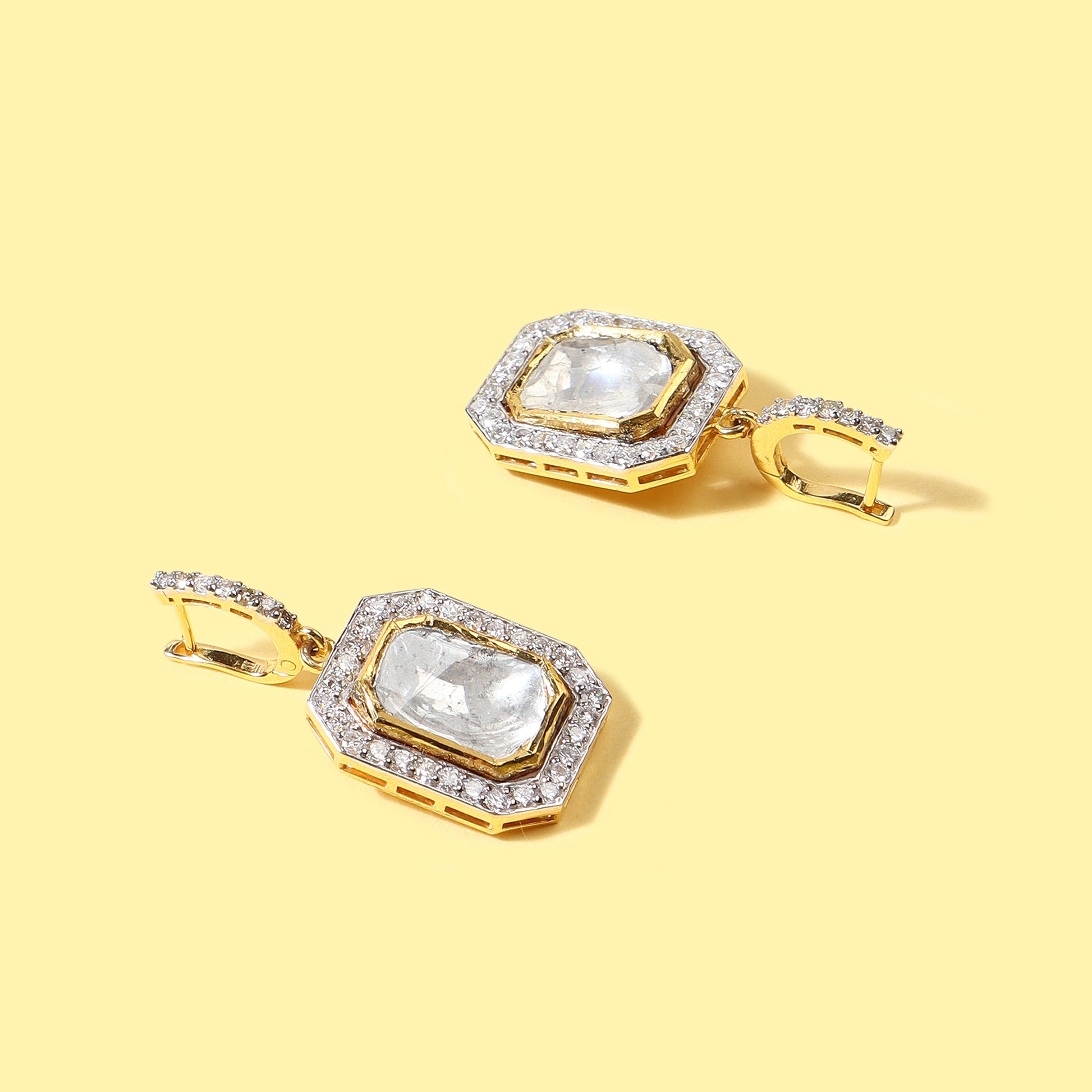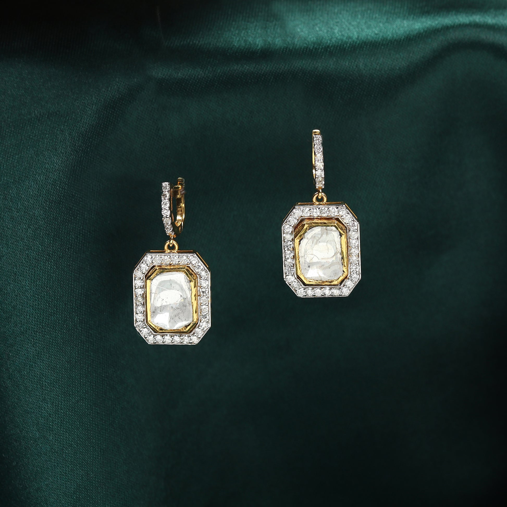 Gold Jadau Polki & Diamond Earrings
