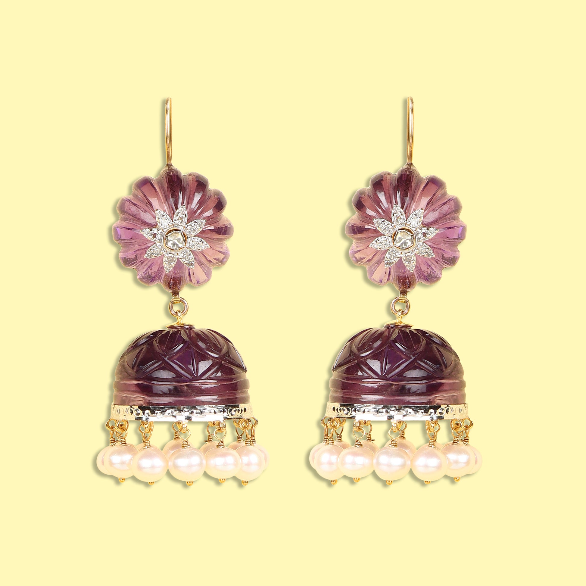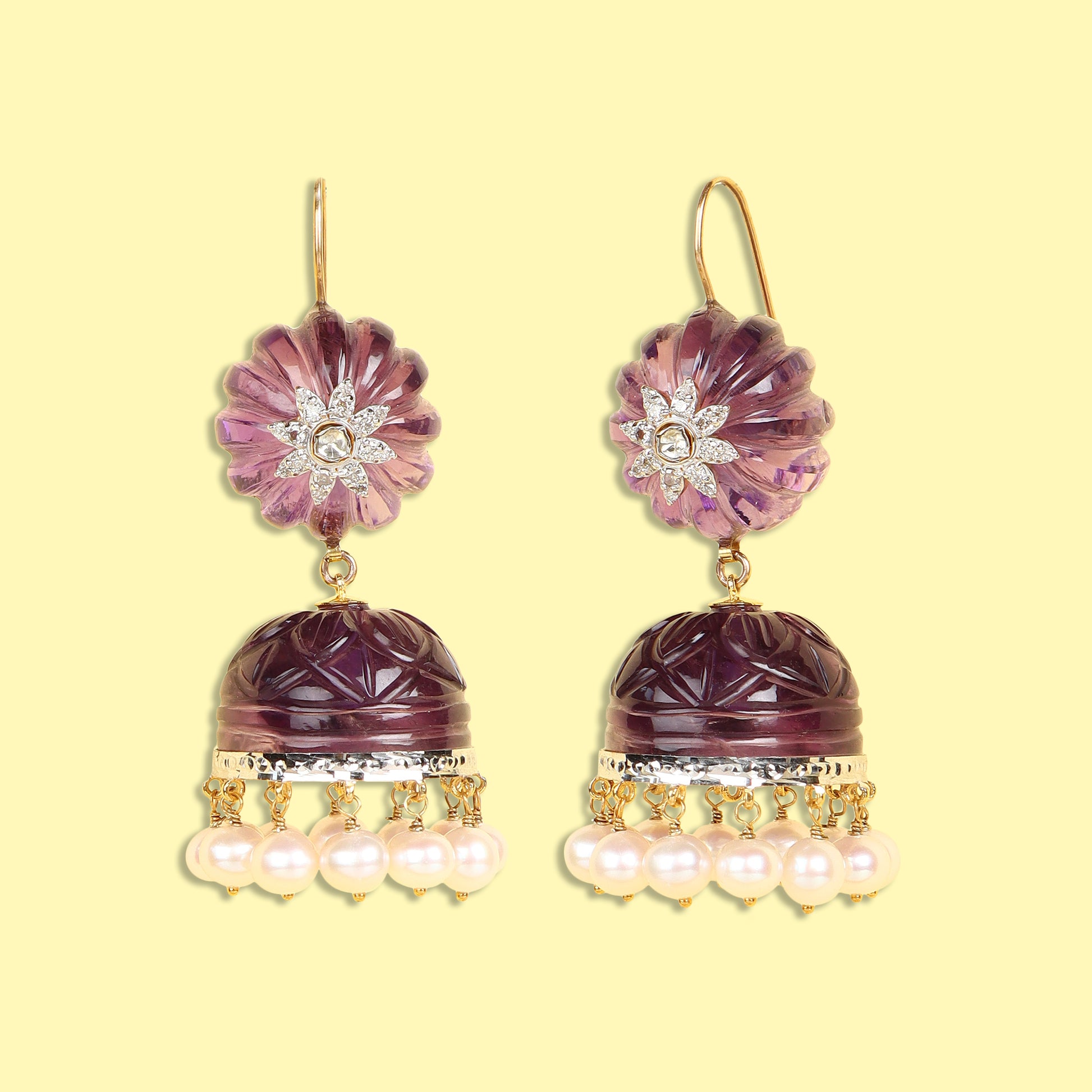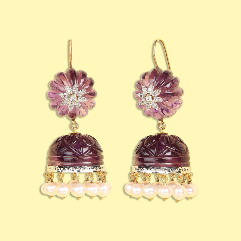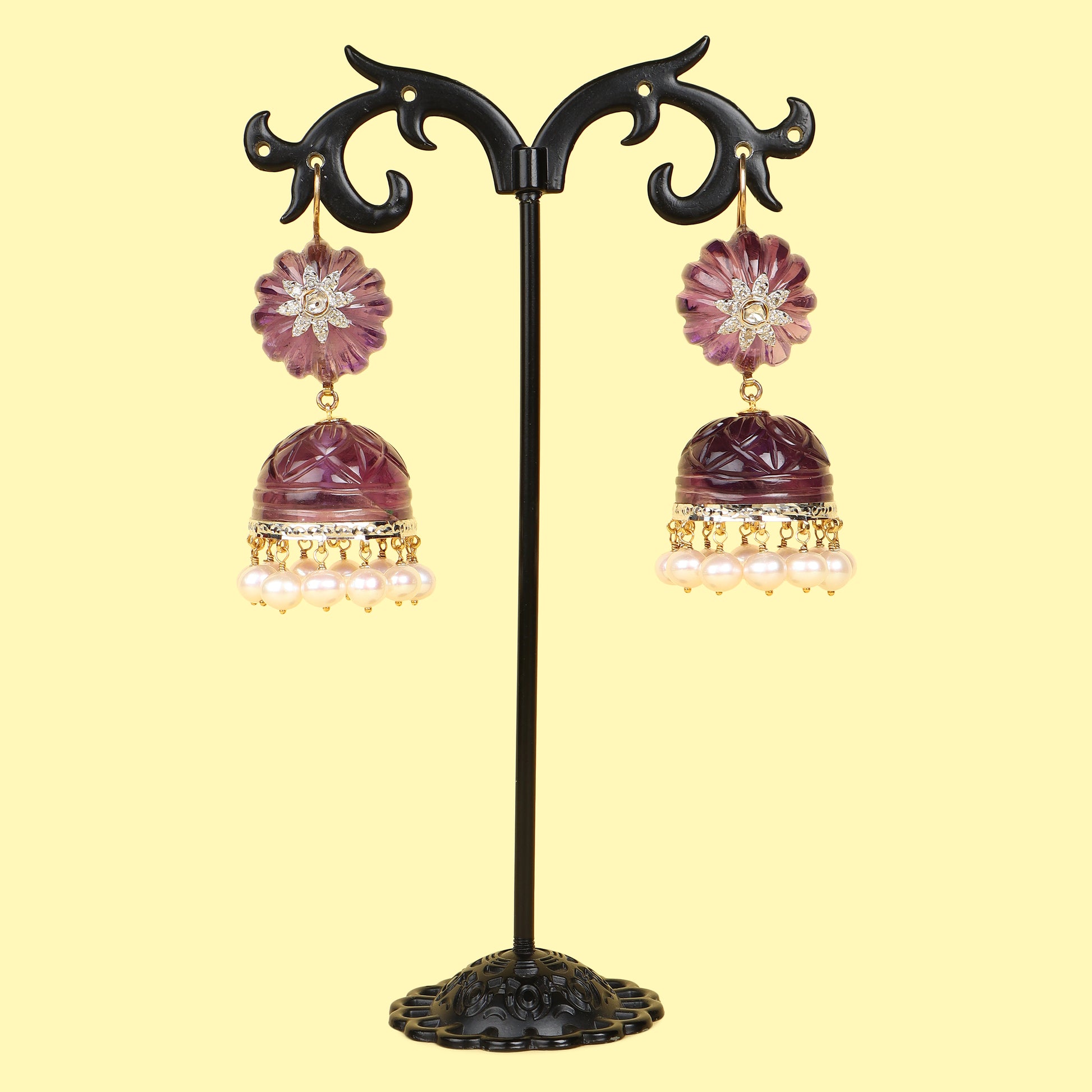 Gold 9.0 cts 4.35 gms, Diamond 0.32 cts, Polki 0.10 cts Amethyst 120 cts & Pearls 25 cts