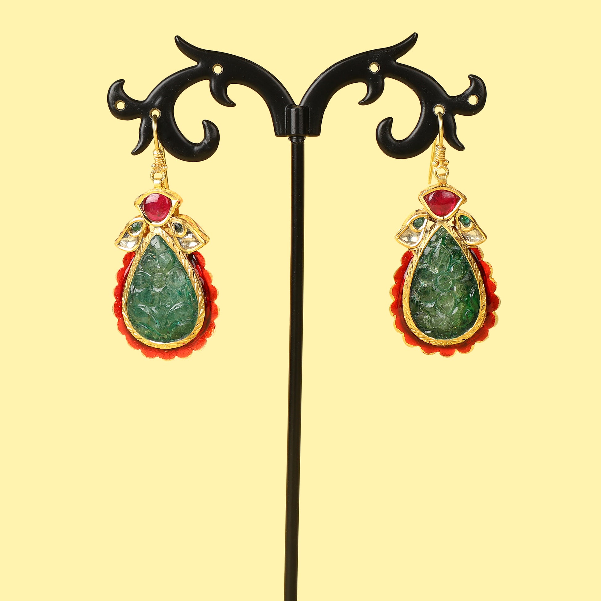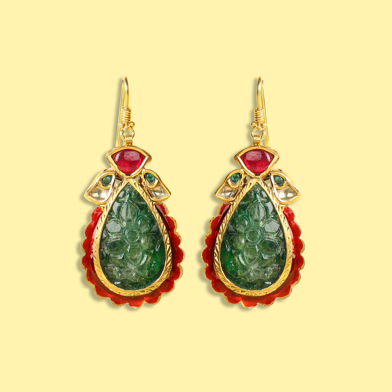 Gold 18 & 24 cts 6.7 gms, Polki 0.35 cts, Rubies 1.0 cts, Emeralds 26.5 cts