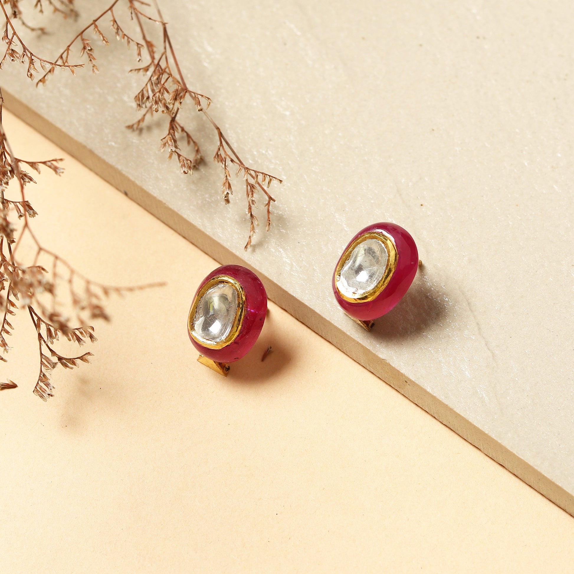 Gold Jadau Polki & Ruby Earrings
