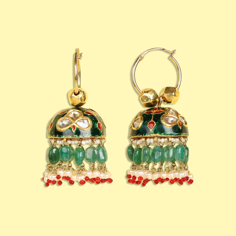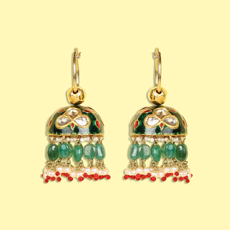 Gold 18, 22 & 24 cts 6.55 gms, Polki 1.20 cts, Pearls 32.5 cts, Emeralds 25.0 cts
